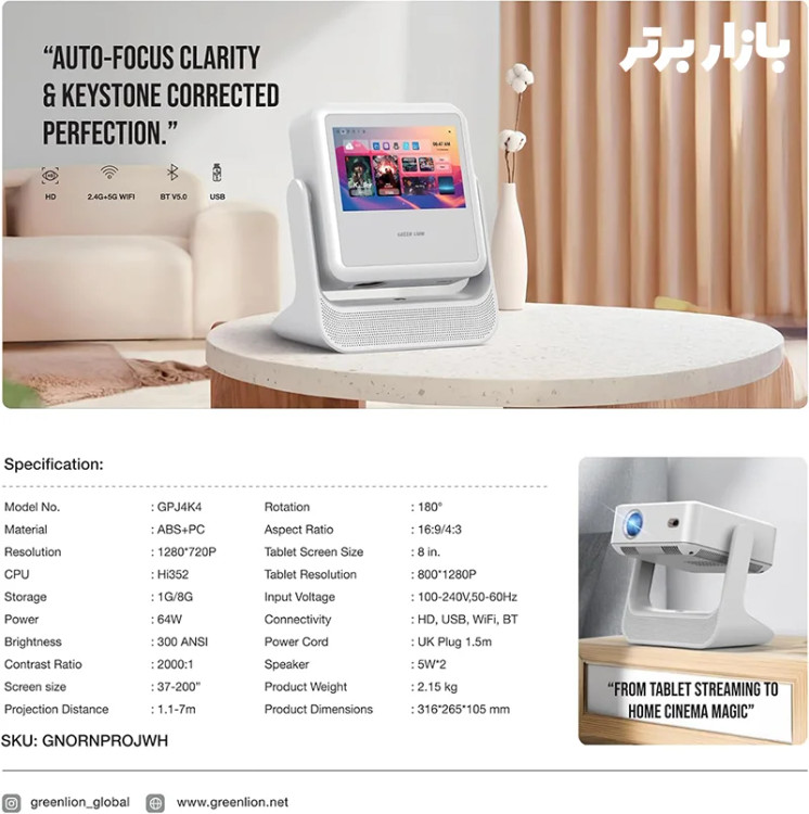 تبلت و ویدئو پروژکتور قابل حمل گرین لاین مدل Orion